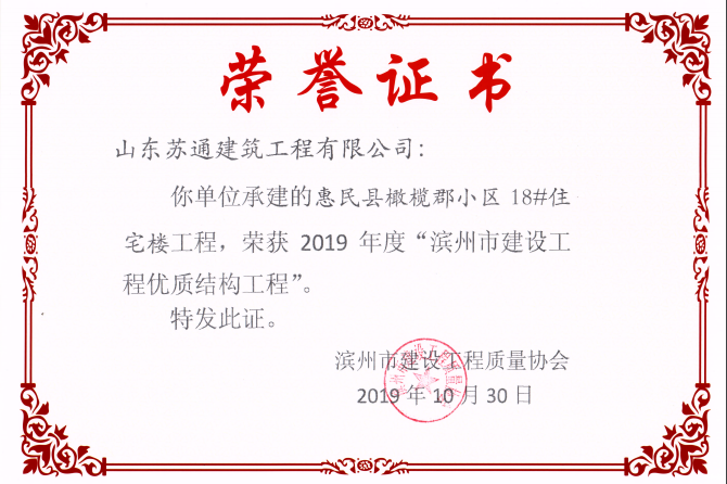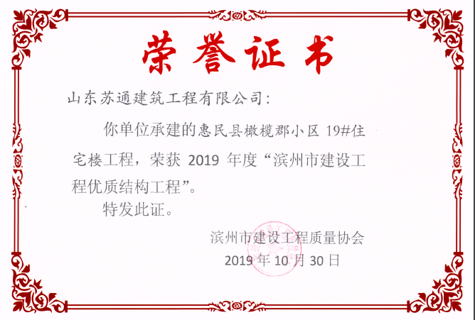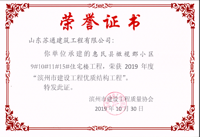 山東蘇通建筑工程有限公司,創(chuàng)建于2009年8月。目前擁有房屋建筑工程施工總承包壹級、市政公用工程施工總承包叁級、水利水電工程施工總承包叁級資質(zhì),同時還具有建筑裝修裝飾工程專業(yè)承包貳級、消防設(shè)施工程專業(yè)承包貳級、鋼結(jié)構(gòu)工程專業(yè)承包叁級、建筑機(jī)電安裝工程專業(yè)承包叁級等專業(yè)承包資質(zhì)。 公司總部坐落于山東省濱州市濱城區(qū)黃河十二路877號,現(xiàn)有辦公面積約2000平方米,機(jī)構(gòu)設(shè)黨支部工會辦公室、總經(jīng)理辦公室、綜合辦公室、工程管理部、經(jīng)營預(yù)算部、資產(chǎn)財(cái)務(wù)部、材料設(shè)備部、運(yùn)行管理部、法律事務(wù)部等多個職能部門。公司管理體系已經(jīng)通過了GB/T 19001及GB/T 50430質(zhì)量管理體系、GB/T 24001環(huán)境管理體系(EMS)、GB/T 28001職業(yè)健康安全管理體系(OHSMS)等體系的認(rèn)證。 公司承建完工了濱州市建大教師之家、建大清怡苑、香格里拉水岸綠城住宅小區(qū)、雙泰建大城、曲阜崇德公館住宅小區(qū)、北海新區(qū)御景藍(lán)灣住宅小區(qū)、沾化德榮國際華城住宅小區(qū)、惠民橄欖郡住宅小區(qū)等工程項(xiàng)目,目前在建工程項(xiàng)目有:濱州市頤高國際電子商務(wù)產(chǎn)業(yè)園住宅小區(qū)項(xiàng)目、濱州市東盛國際項(xiàng)目、高新區(qū)建大中央華府住宅小區(qū)項(xiàng)目、濱州市融匯新里程住宅小區(qū)項(xiàng)目、濱州市建大秦皇壹號住宅小區(qū)項(xiàng)目、濱州市森林花...